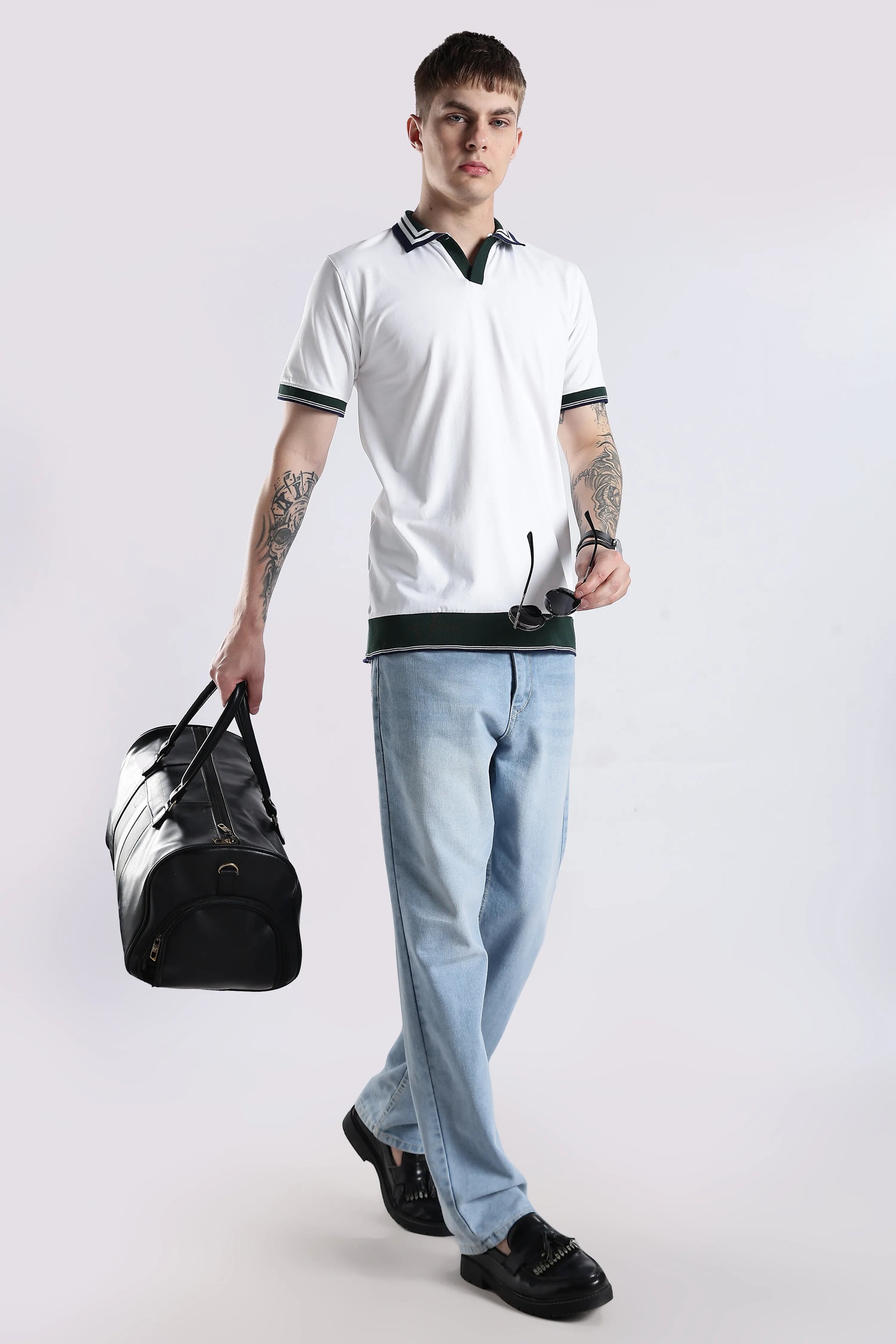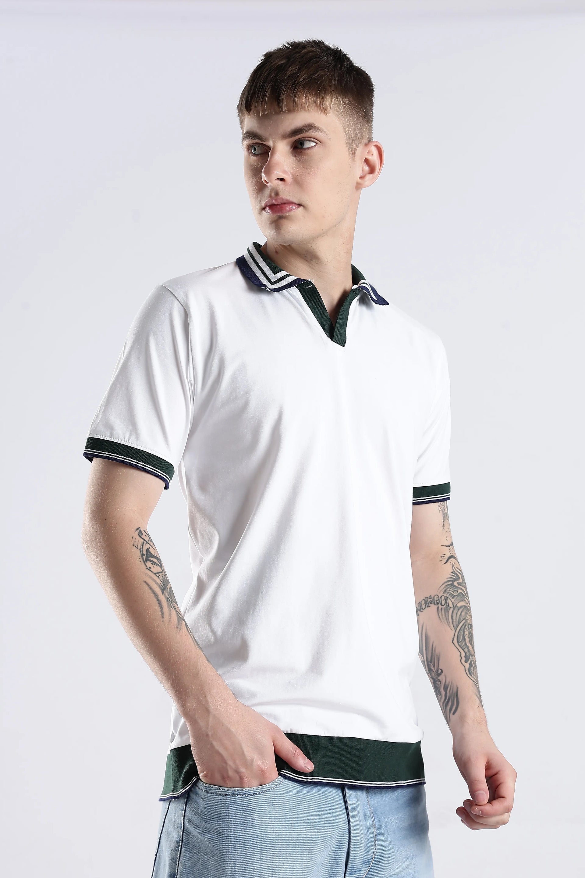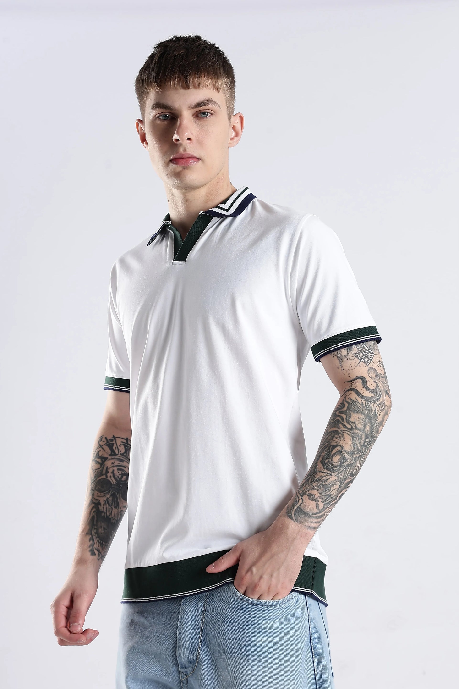 Crafted from a refined blend of 96.5% cotton and 3.5% spandex, the Ivory Club Collar Polo Knit offers both comfort and flexibility for all-day wear. Its textured collar and sleeve accents introduce subtle detail, elevating casual and smart-casual looks with understated sophistication. The breathable, soft fabric ensures lasting comfort while maintaining a polished appearance. Perfect for those seeking durability, versatility, and timeless style in one piece.