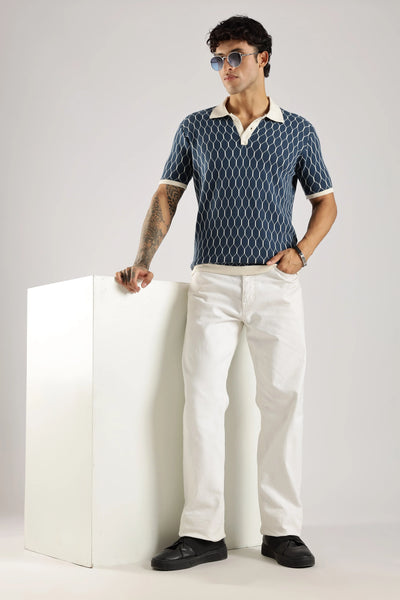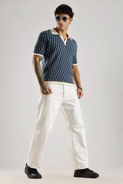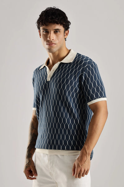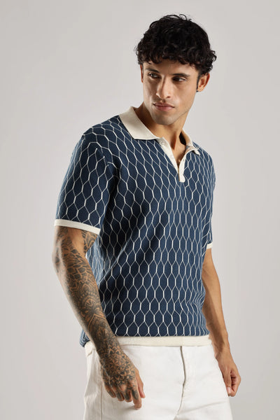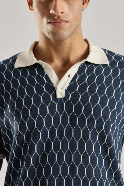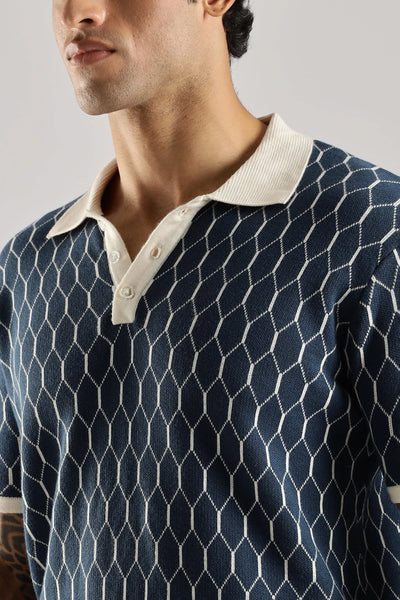 Crafted from 100% Indian cotton, the Navy Heritage Jacquard Polo Knit delivers a refined balance of comfort and durability. Its subtle jacquard pattern enhances the timeless navy color, adding depth and sophistication. Designed with half sleeves and a structured polo collar, it offers a polished look suitable for both casual and semi-formal occasions. Breathable and versatile, this polo ensures ease of movement while maintaining classic elegance.
