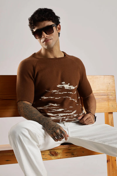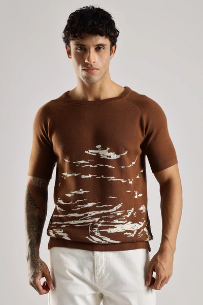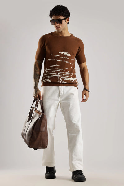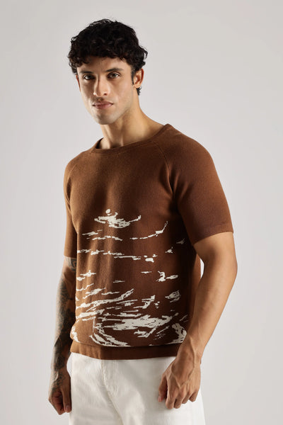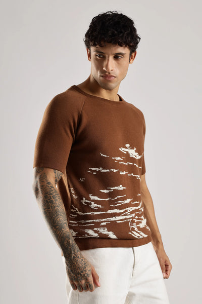 Crafted from 100% Indian cotton, the Sandstone Wave Jacquard Knit Crew Neck T-shirt blends breathable comfort with sophisticated style. Its half-sleeve design and intricate jacquard knit wave pattern create a refined yet relaxed look, perfect for both casual and smart-casual occasions. Soft, durable, and versatile, this T-shirt offers long-lasting wear without compromising on comfort or elegance.