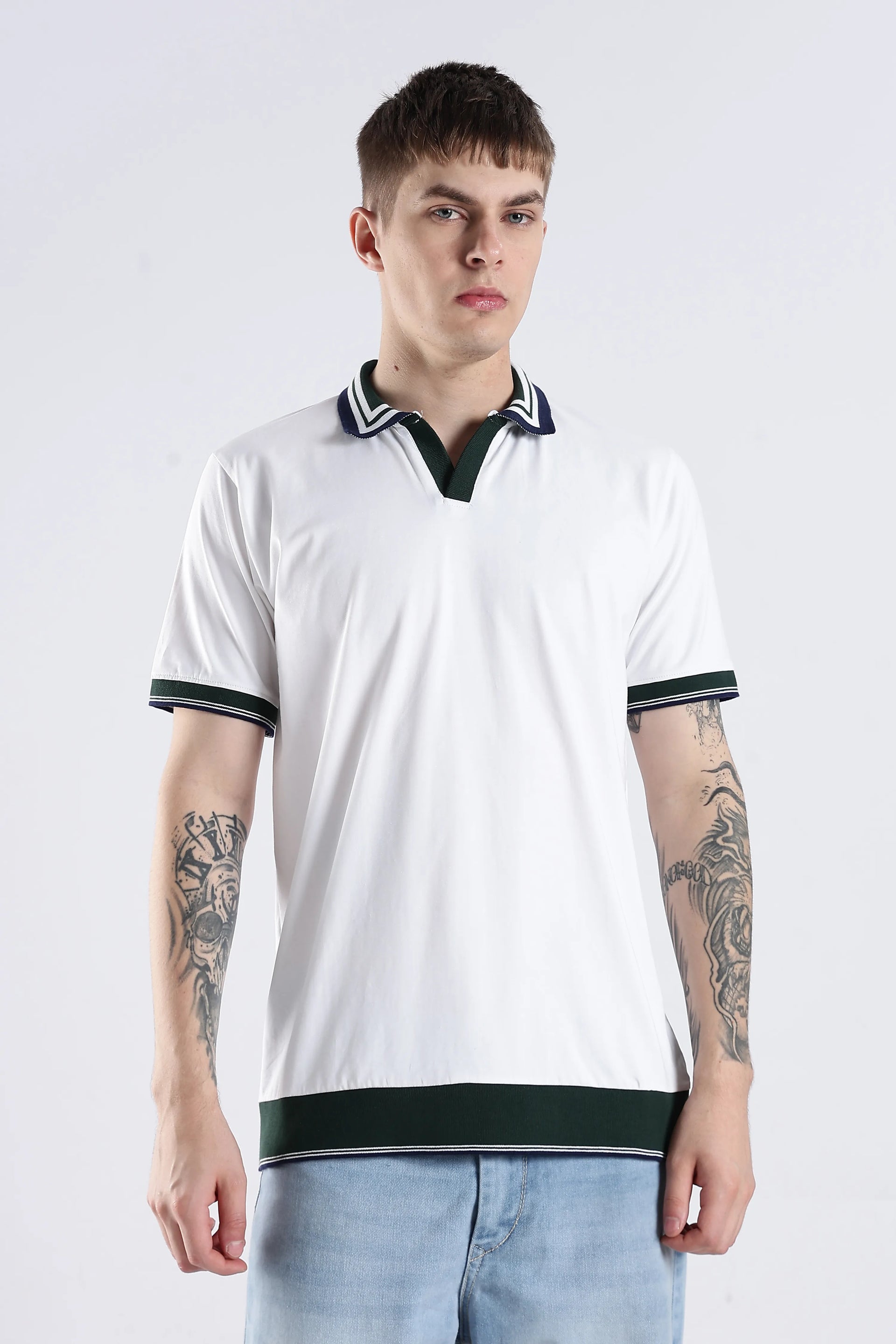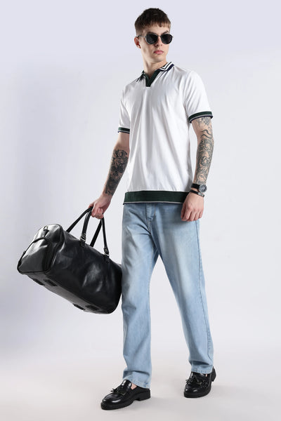 Crafted from a refined blend of 96.5% cotton and 3.5% spandex, the Ivory Club Collar Polo Knit offers both comfort and flexibility for all-day wear. Its textured collar and sleeve accents introduce subtle detail, elevating casual and smart-casual looks with understated sophistication. The breathable, soft fabric ensures lasting comfort while maintaining a polished appearance. Perfect for those seeking durability, versatility, and timeless style in one piece.